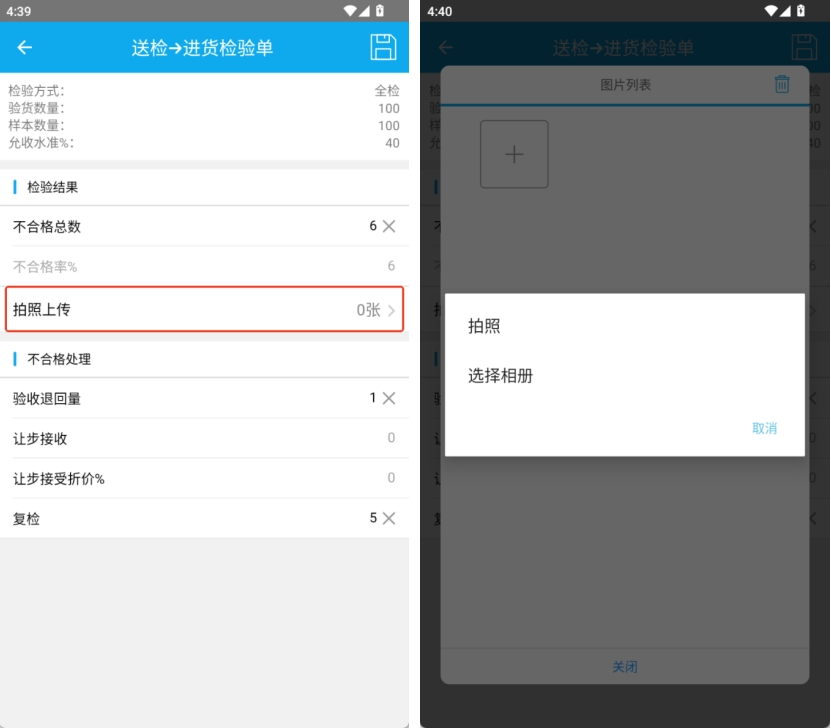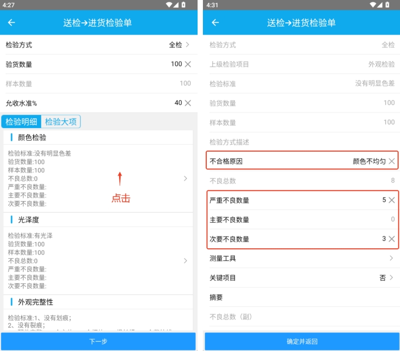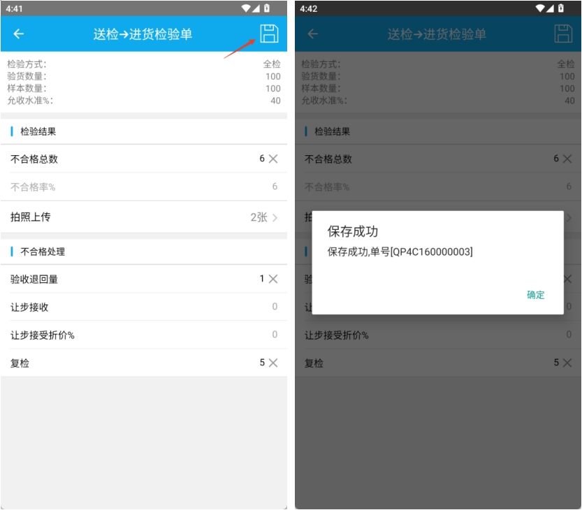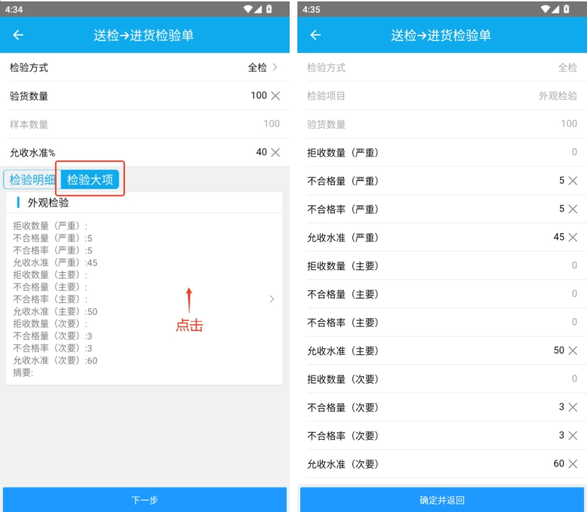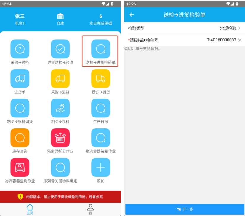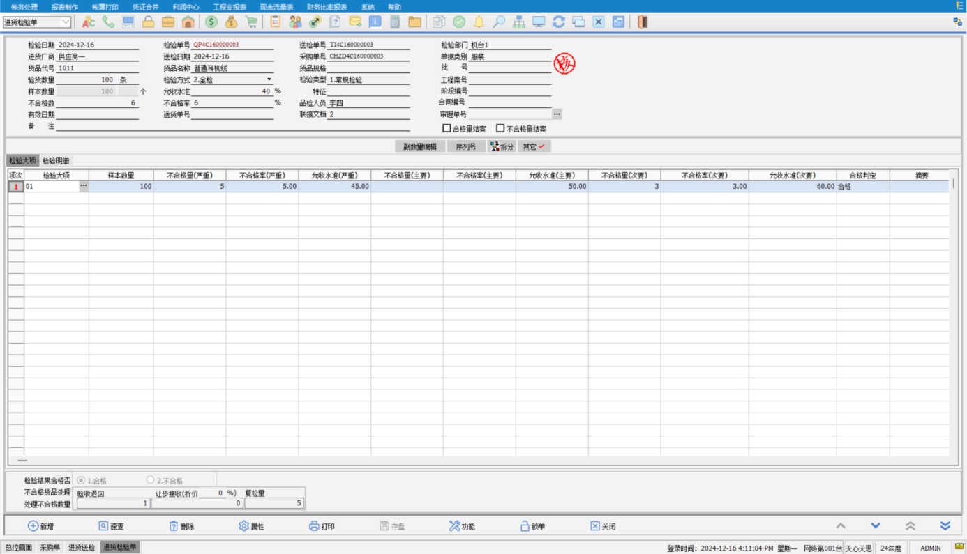 一、要點(diǎn)說明AI-WMS增加了【送檢->進(jìn)貨檢驗(yàn)單】,保存后生成的單據(jù)為ERP系統(tǒng)的【進(jìn)貨檢驗(yàn)單】。 1、要使用此單據(jù),必須要在ERP系統(tǒng)先設(shè)置好【檢驗(yàn)項(xiàng)目設(shè)定】和【貨品檢驗(yàn)標(biāo)準(zhǔn)設(shè)定】。 2、檢驗(yàn)后續(xù)處理: ◎ 檢驗(yàn)合格及讓步接收的部分,通過ERP系統(tǒng)【檢驗(yàn)單轉(zhuǎn)單處理-轉(zhuǎn)進(jìn)貨】畫面,產(chǎn)生進(jìn)貨單; ◎ 檢驗(yàn)不合格、且不合格處理=驗(yàn)收退回,通過ERP系統(tǒng)【檢驗(yàn)單轉(zhuǎn)單處理-轉(zhuǎn)進(jìn)貨驗(yàn)收退回】畫面,產(chǎn)生進(jìn)貨驗(yàn)收退回單; ◎ 檢驗(yàn)不合格、且不合格處理=復(fù)檢,通過PDA【送檢-進(jìn)貨檢驗(yàn)單】,進(jìn)行重新檢驗(yàn)。 適用版本:2024-12-20以后的365A版本。 二、功能說明1、ERP設(shè)置【檢驗(yàn)項(xiàng)目設(shè)定】 2、ERP設(shè)置【貨品檢驗(yàn)標(biāo)準(zhǔn)設(shè)定】 3、ERP錄入【采購(gòu)單】 4、ERP錄入【進(jìn)貨送檢單】 設(shè)置為需檢驗(yàn): 5、PDA錄入【送檢->進(jìn)貨檢驗(yàn)單】 打開單據(jù),選擇“檢驗(yàn)類型”,掃描進(jìn)貨送檢單號(hào),點(diǎn)擊【下一步】 ◎ 檢驗(yàn)類型:支持“常規(guī)檢驗(yàn)”和“復(fù)檢” 選擇要檢驗(yàn)的貨品 確定“檢驗(yàn)方式”(“全檢”或“抽樣”)、“驗(yàn)貨數(shù)量”、“允收水準(zhǔn)%” 點(diǎn)擊【檢驗(yàn)明細(xì)】項(xiàng)次內(nèi)容,如果有不合格的貨品,則選擇“不合格原因”,輸入“嚴(yán)重不良數(shù)量”、“主要不良數(shù)量”或“次要不良數(shù)量”,輸入完成后點(diǎn)擊【確定并返回】, 然后再繼續(xù)錄入下一個(gè)檢驗(yàn)明細(xì)的資料 可以切換到【檢驗(yàn)大項(xiàng)】頁簽,錄入檢驗(yàn)大項(xiàng)的內(nèi)容,然后點(diǎn)擊【確定并返回】 PS. 如果沒有顯示【檢驗(yàn)大項(xiàng)】頁簽,可以在【AI-WMS單據(jù)屬性設(shè)定(Web)】中勾選開啟 點(diǎn)擊【下一步】 確定“不合格總數(shù)”,以及輸入不合格處理相關(guān)欄位 支持拍照上傳,可以直接拍照、也可以選擇相冊(cè)的圖片 選擇或拍照完成后,點(diǎn)擊【關(guān)閉】即可 然后保存單據(jù)即可 6、ERP查看【進(jìn)貨檢驗(yàn)單】 在PDA保存的單據(jù),可以在ERP【進(jìn)貨檢驗(yàn)單】中查看 PDA上傳的圖片可以雙擊表頭的【聯(lián)接文檔】下載查看。 |