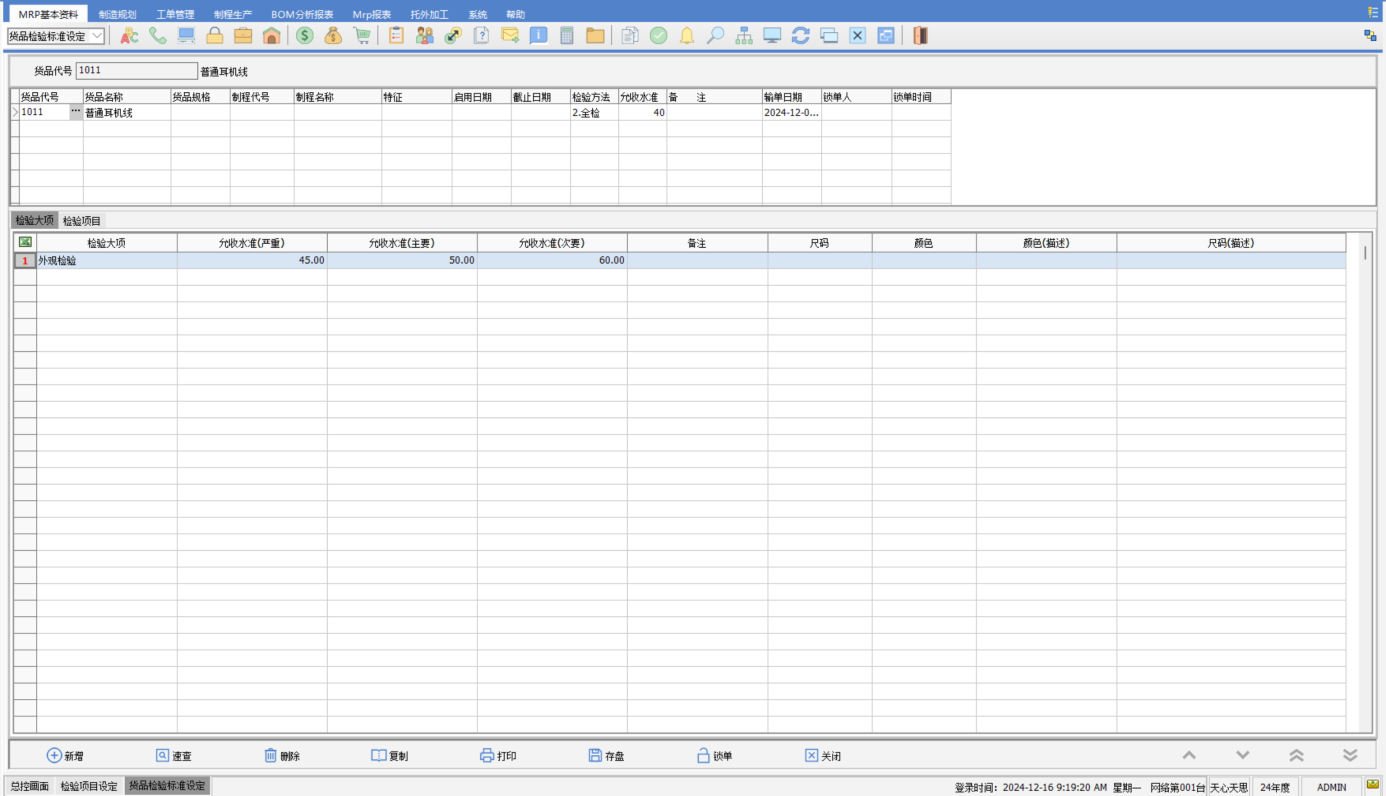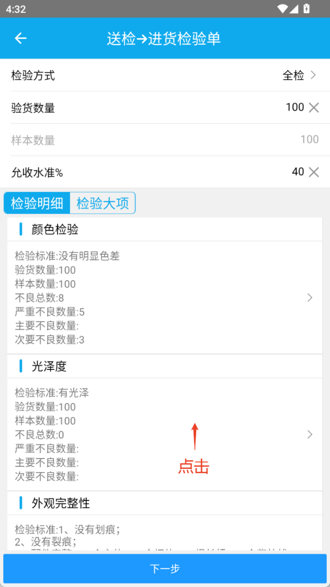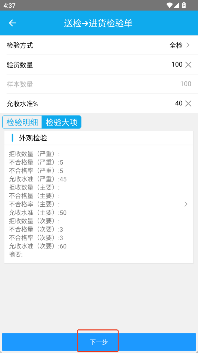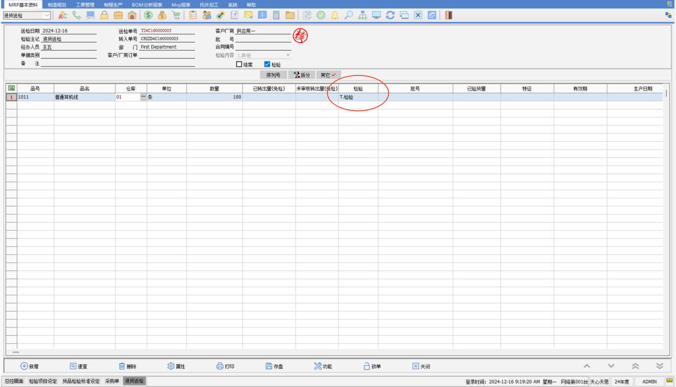 一、要點(diǎn)說明AI-WMS增加了【送檢->進(jìn)貨檢驗(yàn)單】,保存后生成的單據(jù)為ERP系統(tǒng)的【進(jìn)貨檢驗(yàn)單】。 1、要使用此單據(jù),必須要在ERP系統(tǒng)先設(shè)置好【檢驗(yàn)項(xiàng)目設(shè)定】和【貨品檢驗(yàn)標(biāo)準(zhǔn)設(shè)定】。 2、檢驗(yàn)后續(xù)處理: ◎ 檢驗(yàn)合格及讓步接收的部分,通過ERP系統(tǒng)【檢驗(yàn)單轉(zhuǎn)單處理-轉(zhuǎn)進(jìn)貨】畫面,產(chǎn)生進(jìn)貨單; ◎ 檢驗(yàn)不合格、且不合格處理=驗(yàn)收退回,通過ERP系統(tǒng)【檢驗(yàn)單轉(zhuǎn)單處理-轉(zhuǎn)進(jìn)貨驗(yàn)收退回】畫面,產(chǎn)生進(jìn)貨驗(yàn)收退回單; ◎ 檢驗(yàn)不合格、且不合格處理=復(fù)檢,通過PDA【送檢-進(jìn)貨檢驗(yàn)單】,進(jìn)行重新檢驗(yàn)。 適用版本:2024-12-20以后的365A版本。 二、功能說明1、ERP設(shè)置【檢驗(yàn)項(xiàng)目設(shè)定】 2、ERP設(shè)置【貨品檢驗(yàn)標(biāo)準(zhǔn)設(shè)定】 3、ERP錄入【采購(gòu)單】 4、ERP錄入【進(jìn)貨送檢單】 設(shè)置為需檢驗(yàn): 5、PDA錄入【送檢->進(jìn)貨檢驗(yàn)單】 打開單據(jù),選擇“檢驗(yàn)類型”,掃描進(jìn)貨送檢單號(hào),點(diǎn)擊【下一步】 ◎ 檢驗(yàn)類型:支持“常規(guī)檢驗(yàn)”和“復(fù)檢” 選擇要檢驗(yàn)的貨品 確定“檢驗(yàn)方式”(“全檢”或“抽樣”)、“驗(yàn)貨數(shù)量”、“允收水準(zhǔn)%” 點(diǎn)擊【檢驗(yàn)明細(xì)】項(xiàng)次內(nèi)容,如果有不合格的貨品,則選擇“不合格原因”,輸入“嚴(yán)重不良數(shù)量”、“主要不良數(shù)量”或“次要不良數(shù)量”,輸入完成后點(diǎn)擊【確定并返回】, 然后再繼續(xù)錄入下一個(gè)檢驗(yàn)明細(xì)的資料 可以切換到【檢驗(yàn)大項(xiàng)】頁簽,錄入檢驗(yàn)大項(xiàng)的內(nèi)容,然后點(diǎn)擊【確定并返回】 PS. 如果沒有顯示【檢驗(yàn)大項(xiàng)】頁簽,可以在【AI-WMS單據(jù)屬性設(shè)定(Web)】中勾選開啟 點(diǎn)擊【下一步】 確定“不合格總數(shù)”,以及輸入不合格處理相關(guān)欄位 支持拍照上傳,可以直接拍照、也可以選擇相冊(cè)的圖片 選擇或拍照完成后,點(diǎn)擊【關(guān)閉】即可 然后保存單據(jù)即可 6、ERP查看【進(jìn)貨檢驗(yàn)單】 在PDA保存的單據(jù),可以在ERP【進(jìn)貨檢驗(yàn)單】中查看 PDA上傳的圖片可以雙擊表頭的【聯(lián)接文檔】下載查看。 |