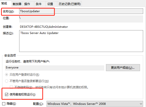 RebootTBossService.bat 文件里需要修改為ERP的TBOSS TbossGate.exe文件的路徑,然后把RebootTBossService.bat文件放到TbossServer文件夾底下,再創(chuàng)建任務計劃定時執(zhí)行該bat文件。 1. 電腦右鍵--管理 2. 系統(tǒng)工具--任務計劃程序--任務計劃程序庫--Microsoft--Windows 3. 添加名稱 4. 添加觸發(fā)器 5. 新建觸發(fā)器 6. 新建操作 7. 非常重要(如果不配置可能不會執(zhí)行:定時任務未配置在一個有效的組內(nèi),或者定時任務所在用戶組用戶無效或無權(quán)限)win+R鍵 輸入gpedit.msc 8. 控制面板-系統(tǒng)和安全-管理工具-本地安全策略,否則執(zhí)行一次后不再執(zhí)行了 特別注意:RebootTBossService.bat文件的權(quán)限要全部給予 |